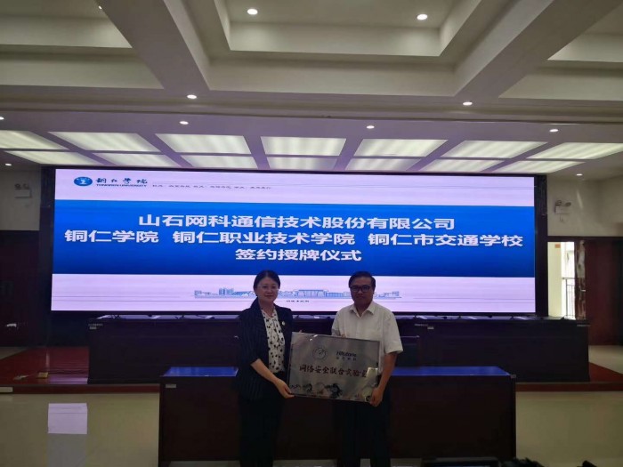 7月4日下午,山石网科通信技术股份有限公司与我院、铜仁学院、铜仁市交通学校在铜仁学院会议室共同签署了校企合作协议及设备捐赠协议,并举行“网络安全联合实验室”授牌仪式。铜仁市委常委、副市长查颖冬,苏州市委宣传部副部长、网信办主任陈雪嵘,万山区委常委、副区长杨亮分别为三所学校授牌。山石网科公司总裁助理崔清晨与三所学校进行了签约。我院副院长张命华、信息工程学院院长陈康、对外合作部部长杨胜敖,铜仁学院副校长罗红芳、大数据学院颜宝平,铜仁市交通学校校长李伟等有关人员参加仪式。铜仁学院教务处处长龚静主持仪式。