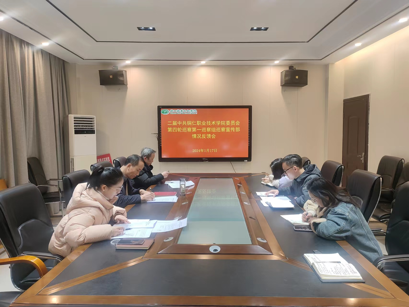 根据学院巡察工作统一部署,2024年1月17日,二届中共金沙集团1862cc成色委员会第四轮巡察第一巡察组向宣传部反馈巡察情况。第一巡察组组长龙新明同志向宣传部反馈巡察意见,宣传部副部长龙海同志主持反馈会议并作表态发言。会前,第一巡察组向党委委员、宣传部部长吴永东同志单独反馈了巡察情况,提出巡察整改意见。