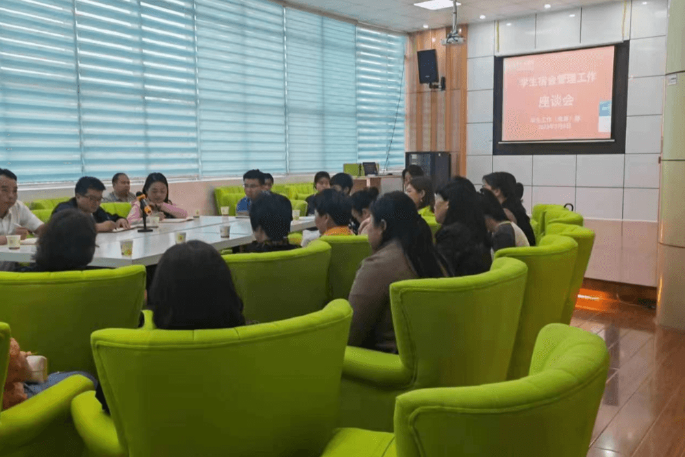 本次座谈旨在切实加强我院学生宿舍管理工作,进一步改善学生的生活和学习条件。座谈伊始,张家俊副院长结合我院学生宿舍管理工作的实际情况,抛砖引玉从宿舍卫生、安全、文化及“三长”管理四个方面提出存在问题,他指出要严格按要求加强宿舍内务管理,加强火灾防范意识同时要加强宿舍文化建设,努力营造团结、温馨、和睦的宿舍文化氛围。接着,外聘宿管员及“三长”代表就宿舍门禁、AIC线上请假、学生逃寝及“三长”管理等问题展开讨论。随后,侯松林部长强调宿舍安全问题要做到心理有数及宿舍精神文明建设的重要性,敦促宿管科对相关工作进行整改。