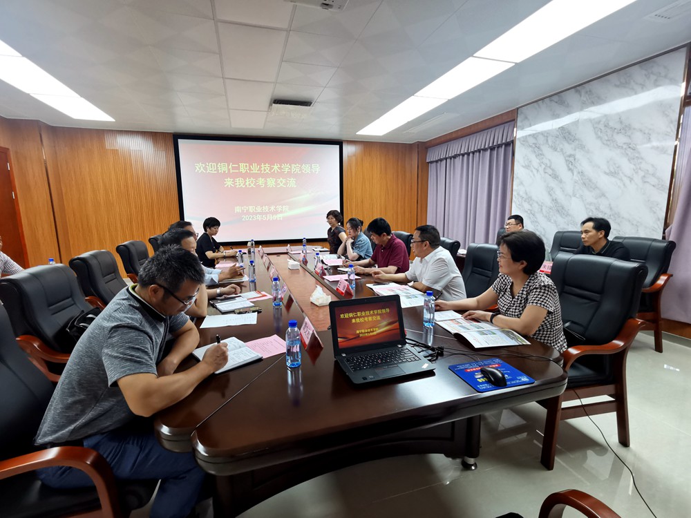 5月5日下午,项光亚一行来到南宁职业技术学院学习考察,受到了院党委副书记、院长周旺的亲切接待。在座谈会上,双方就校园建设、办学投入、“双高”建设、高层次人才引进、产教融合等工作开展了深入交流,学习考察组认真听取了南宁职业技术学院的办学经验和相关工作建议。座谈会后,项光亚一行在周旺等领导的陪同下,参观了智能制造学院先进制造技术实训基地、人工智能应用技术中心、南宁市苏叶健技能大师工作室、智慧城市网络空间安全实训基地、民族工艺(壮族服饰)传承创新职业教育基地、李宁体育(广西)有限公司教师工作站、建筑新型材料与构造虚拟仿真实训基地,详细了解了校内实习实训基地功能、运行管理、产教融合、现代学徒制开展等,为我院下一步的建设发展提供借鉴。