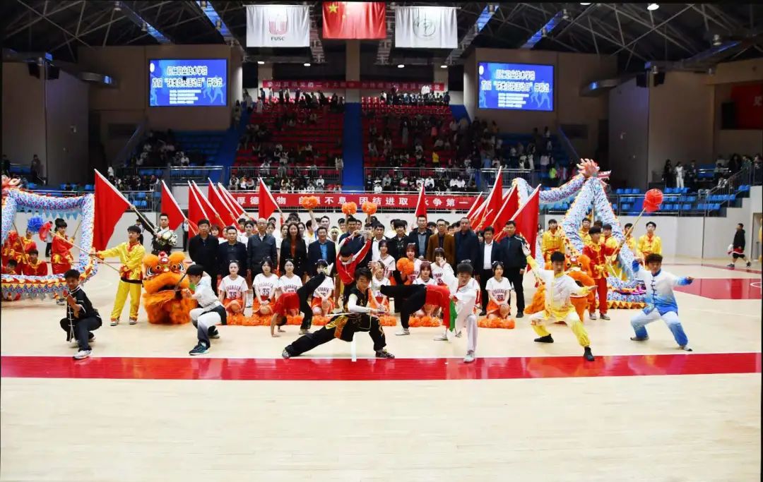 项光亚宣布比赛开幕后,体育俱乐部为现场师生带来了精彩盛大的开幕式表演。啦啦操、拉丁舞、中华武术、太极拳和舞龙舞狮表演,赢得了全场欢呼和掌声。