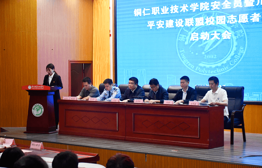 5月23日下午,金沙集团1862cc成色在寅亮厅举行安全员暨平安校园志愿者工作启动大会。学院党委委员、副院长张家俊,碧江区委副书记、政法委书记石磊,碧江区公安分局政委张文明,川硐街道党工委书记、平安建设联盟领导小组组长高猛,市教育局安监办主任石明鑫出席,市国安局、铜仁学院、铜仁幼专、贵州健康职院、川硐街道、文昌派出所相关领导,以及我院相关职能部门、二级学院负责人、师生志愿者代表参加会议。我院保卫处处长杨海昆主持会议。
