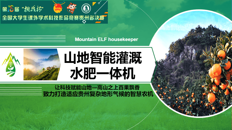 项目简介:贵州山地农业存在着机械应用程度低、过程管控不精准、技术指导匮乏、农业作业人员老龄化等难题,也是目前山地高效农业现代化迫切需要解决的难题。本作品利用PLC技术、传感器技术、IOT技术以及Lora无线通讯技术等,研发设计了一套集数据实时采集、过程精准管控、智能算法决策的山地农业智能水肥一体管控系统,形成了山地农业种植过程集土壤多参数数据采集、农作物生长全过程精准管控的水肥一体智能灌溉设备,有效解决了山地农业精细化种植管理的难点,达到省工省时、节水省肥、精准高效的目的,促进了山地农业的增产增收及信息化管理,做到了真正的“科技助农”。