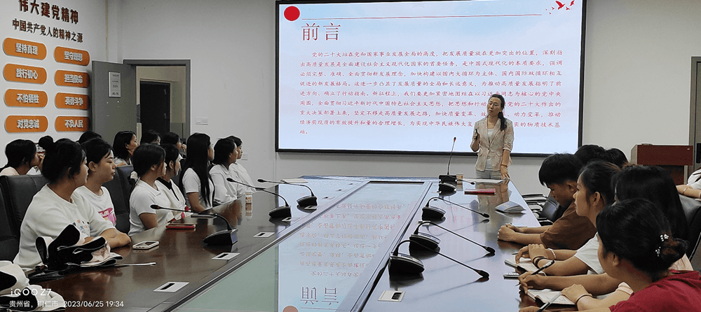 6月25日,学院党委副书记杨海英在人文学院会议室为师生上题为“锚定高质量发展之路,牢牢把握全面建设社会主义现代化国家的首要任务”的思政课,入党积极分子、学生代表到场聆听。