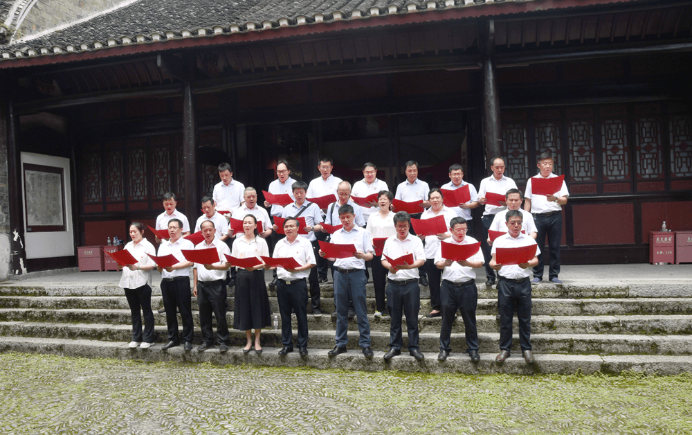在红二、六军团木黄会师纪念馆,全体党员干部还合唱了《没有共产党就没有新中国》。