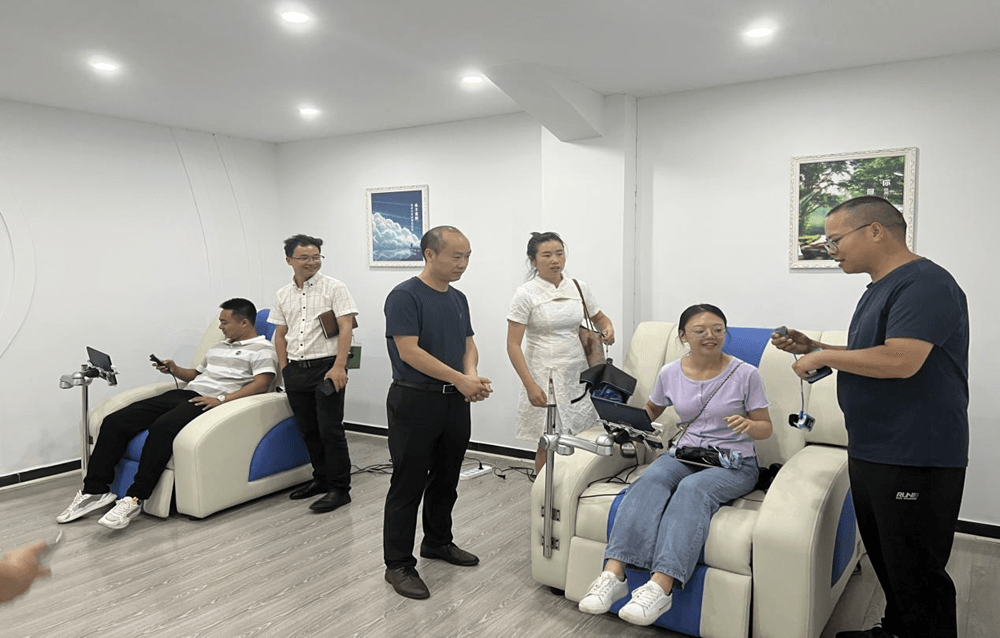 在宋健的带领下,第一站参观了两个二级学院心理辅导站的建设,参观中我院心理辅导员就二级辅导站建设面临的困难进行了深入交流。第二站来到心理健康教育中心进行参观,宋健详细介绍了心理健康教育中心的整体情况,带领大家逐一参观团体辅导室、心灵书吧、生物反馈室、沙盘室、身心放松室、个体咨询室等,并就心理健康教育中心功能区的划分、个案咨询、辅导活动开展、网络宣传、档案的归类整理及学生干部管理等方面的经验与我院教师无私分享,参观中老师们还体验了生物反馈、放松等设备,我院教师了解贵州省高校心理健康示范中心的建设水平,同时也进一步认识到我院在心理健康教育工作上的不足。最后,一行人员在团体辅导室围坐一圈开展座谈交流,就我院心理辅导员工作中面临的困难与挑战进行深入分析与探讨,铜仁学院教师们毫无保留地分享了他们的建设经验,并一一回应了我院教师的心理困惑。