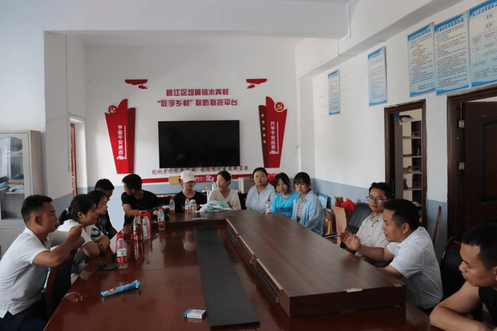 2022年7月9日下午13:00-14:30许,在“三下乡”过程中,我院党总支书记胡国兵,经济与管理学院团总支书记、学生科科长吴华,经济与管理学院学生科老师吴艳叶、严士杰、刘文荟,向下基层到村里的青年大学生送来了亲切的慰问。