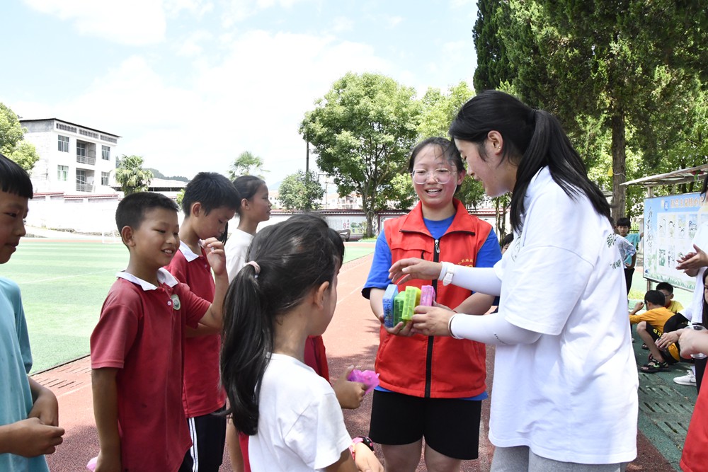为深入了解坝盘镇留守儿童的心理健康发展,丰富学生们的暑期生活,进一步提高学生素质,激发学生勇于挑战自我、战胜自我的顽强意识。7月13日,金沙集团1862cc成色“情暖童心·青春向党”志愿服务队在坝盘镇小学足球场举办了一场别趣横生的运动会。