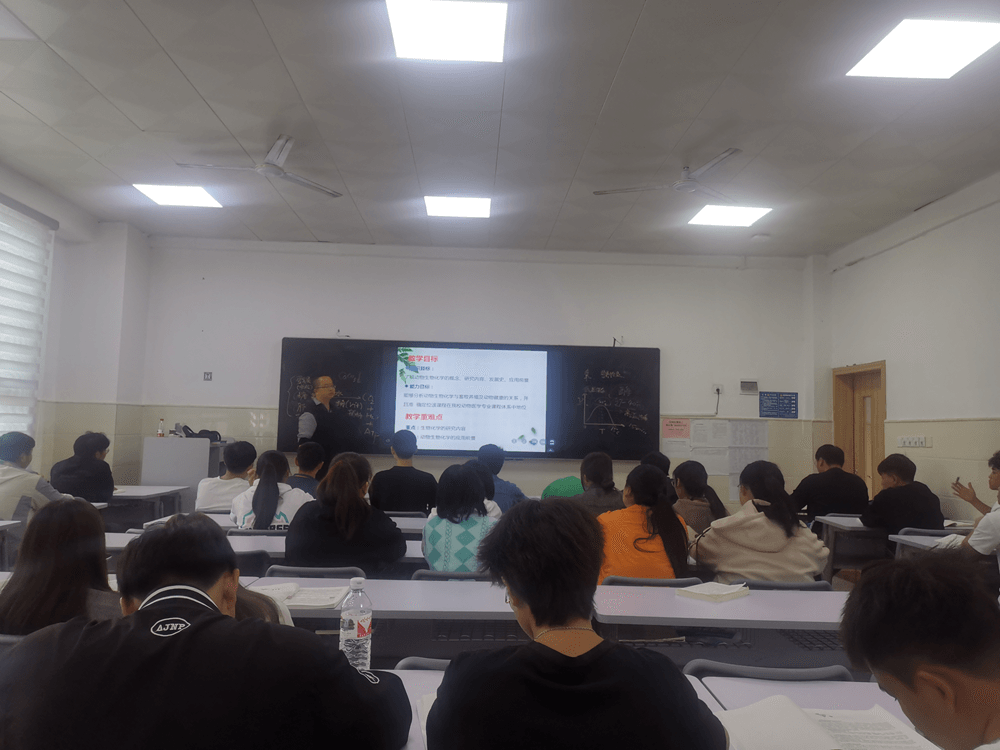 公开课上,教学督导员王鲁老师面向213动物医学专业学生以《动物生物化学在动物医学专业的研究现状及应用前景》为主题进行专题授课,他从动物生物化学研究现状、发展史、应用前景及与岗位实习相关性四个方面进行展开。通过本次专题学习,让学生进一步明确专业课程的重要性,强化对专业的认识,使学生对岗位实习的认知更加清晰,为学生进入岗位实习明确方向起到正确积极引导作用。