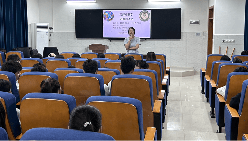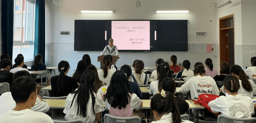 说普通话四海同音,写规范字九州一体。为进一步推动汉字的规范使用和普通话的推广,让文化自信浸润到每一位学生心中,药学院各班于9月17日组织开展了“写好规范字,讲好普通话”主题班会,班会由各班辅导员(班主任)组织召开。