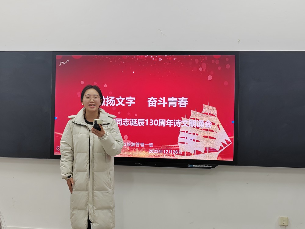 12月26日,233旅游管理一班团支部举行“激扬文字·奋斗青春”主题诗文朗诵会,233旅游管理1班团支部团员、青年积极分子参加了本次活动。