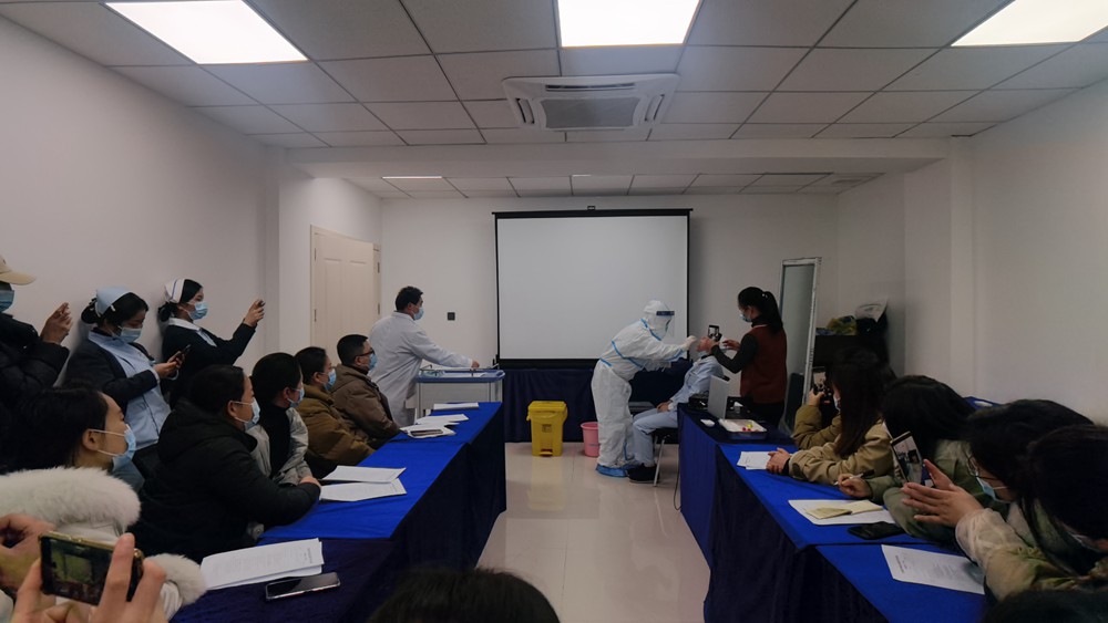 本次培训学校领导高度重视,成立工作小组,拟定培训方案,选派附属医院优秀的医护人员作为指导教师,医护两院具有执业资格的53名教师参加。为期两天的培训,培训方式采用理论讲课和操作示教进行,内容为穿脱防护服和核酸样本采集技术,最终的考核由理论考核和操作考核两部分构成。在整个培训过程中,参训学员们认真听讲,积极参与,严格要求自己,力争把每个操作步骤做到最标准。