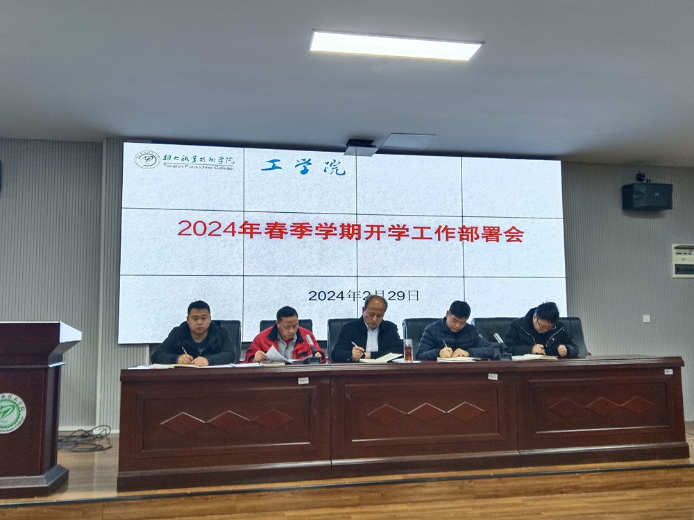 2月29日上午,我院在工学院三楼学术报告厅召开2024年春季学期开学工作部署会,工学院办公室主任吴飞主持,工学院院长王先华出席,全体教职工参加。