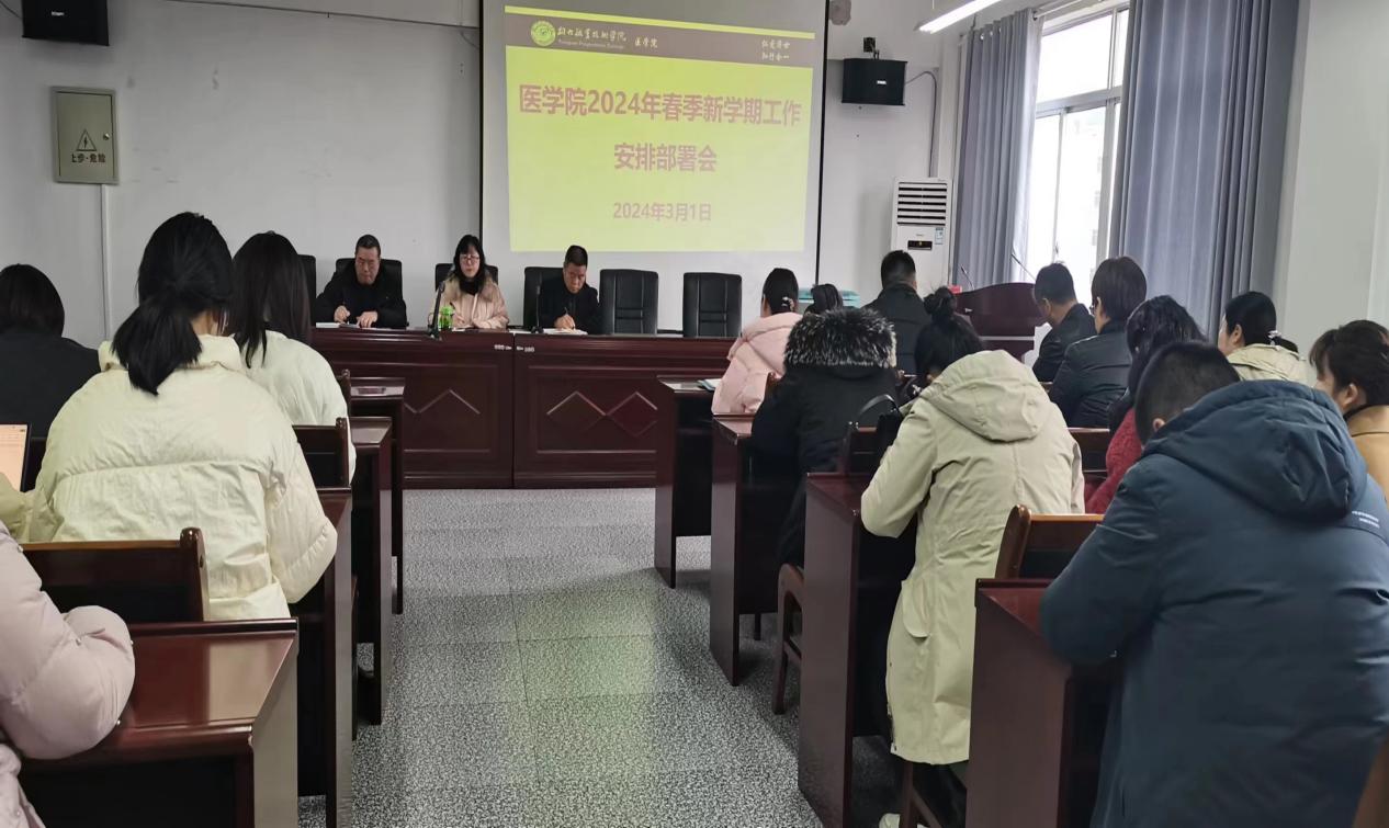 3月1日下午,医学院召开2024年春季新学期工作部署会,会议由医学院党总支副书记龙彬主持,医学院院长徐友英、副院长杨正志及全体教师出席会议。