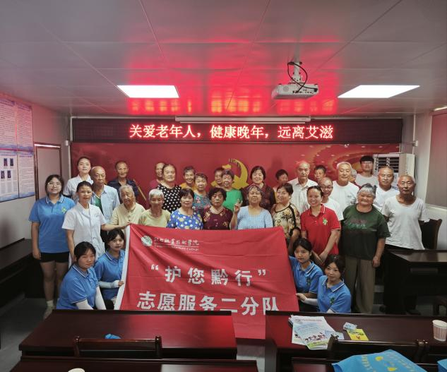 为提高居民对艾滋病及高血压、糖尿病等其他常见慢性疾病的认识和树立防范意识。7月10日上午,护理学院何小娅老师带领“护您黔行”志愿服务队一行23名同学协助玉屏疾控中心的工作人员,在平溪街道教场坝社区开展了一场主题为“关爱老年人,健康晚年,远离艾滋”的宣讲活动。