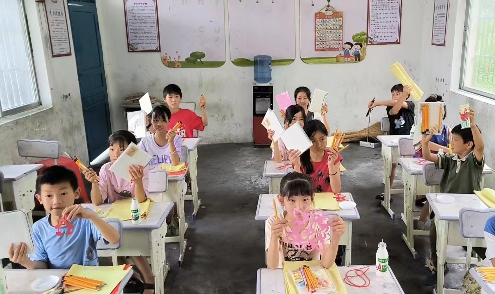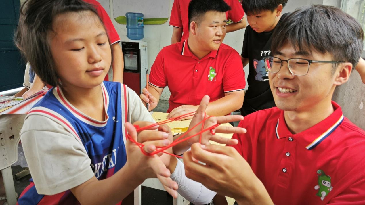 上午,在村支两委的大力支持下,队员们在老师带领下,在棉花山村完小陪伴18个小朋友开展了趣味课堂。通过编制中国结、剪纸等活动,给孩子们带去温暖,欢声笑语贯穿了整个活动。最后,队员们为小朋友们他们发放了铅笔、笔记本等学习用品,鼓励他们努力学习,勇敢追求自己的未来。