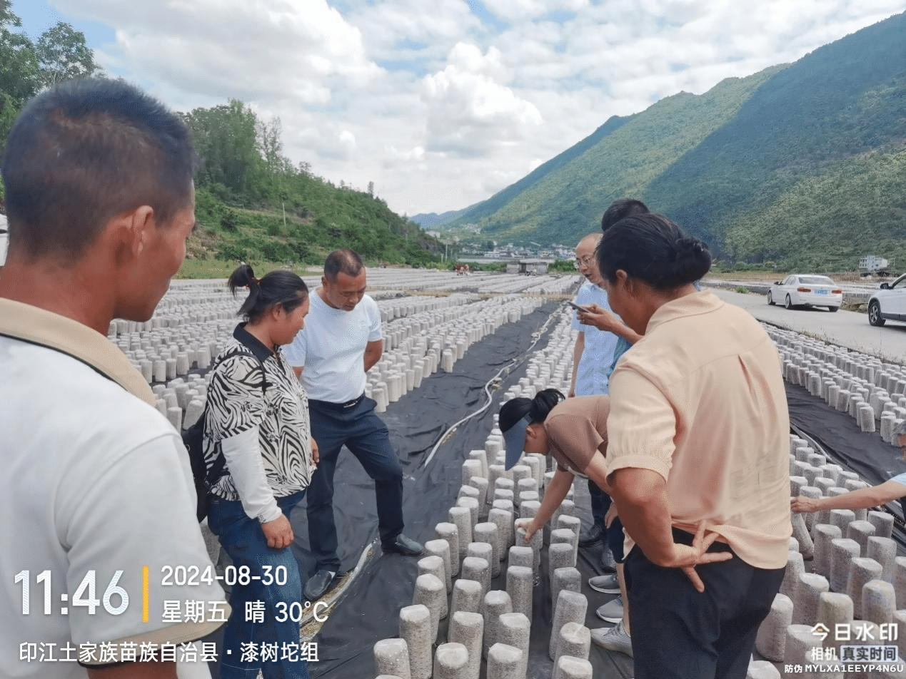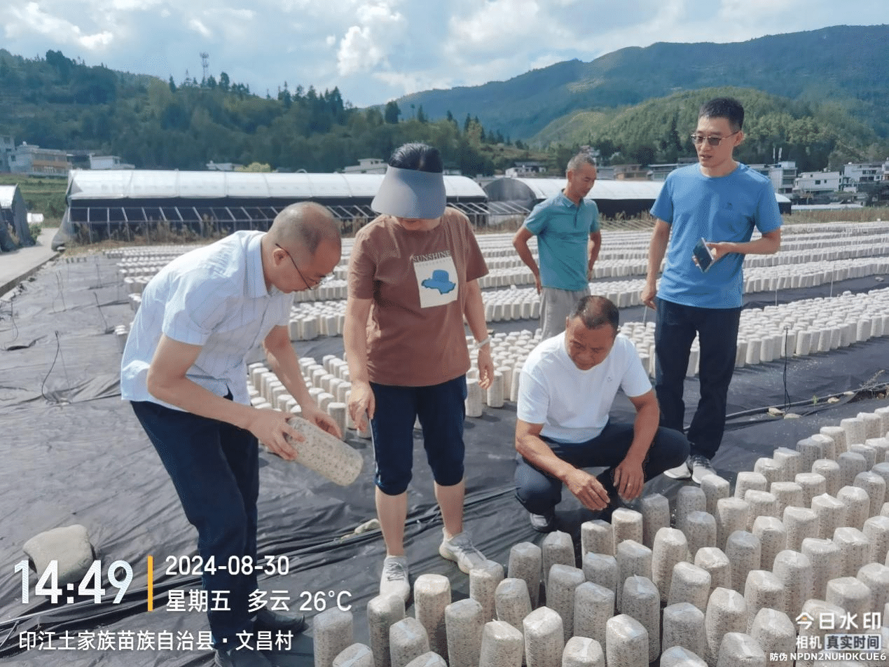 2024年8月30日,金沙集团1862cc成色食用菌工程中心负责人、省食用菌产业技术体系岗位专家顾昌华率团队成员冯立健老师和牟春叶博士赴印江县开展木耳出耳管理技术指导和产业调研,印江县科技服务中心主任温良荣等陪同。