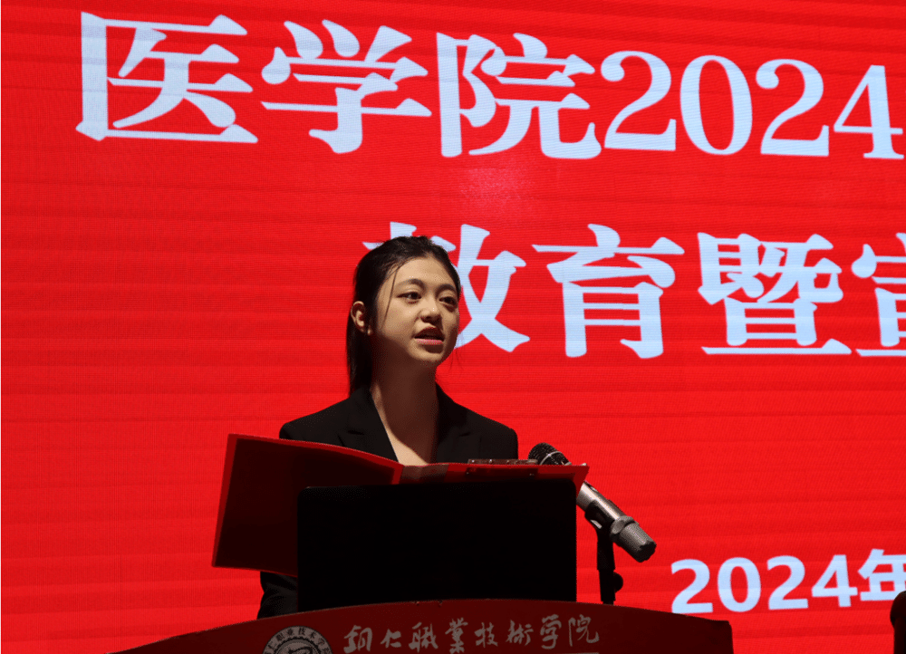 其次,优秀的老生代表走上台前,分享了自己在医学院的学习经历和成长感悟,用真挚的情感和生动的案例激励新生们珍惜当下,勇于挑战自我,不断追求卓越。紧接着,2024级新生代表满怀激情地表达了自己对医学的热爱与向往,承诺将不负韶华,勤奋学习,努力成为一名优秀的医学人才,为守护人类健康贡献力量。